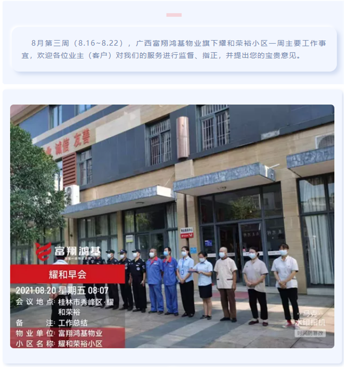 > 8月第三周工(gōng)作简报||富謝科翔鸿基物业耀和荣裕小(xiǎo)区