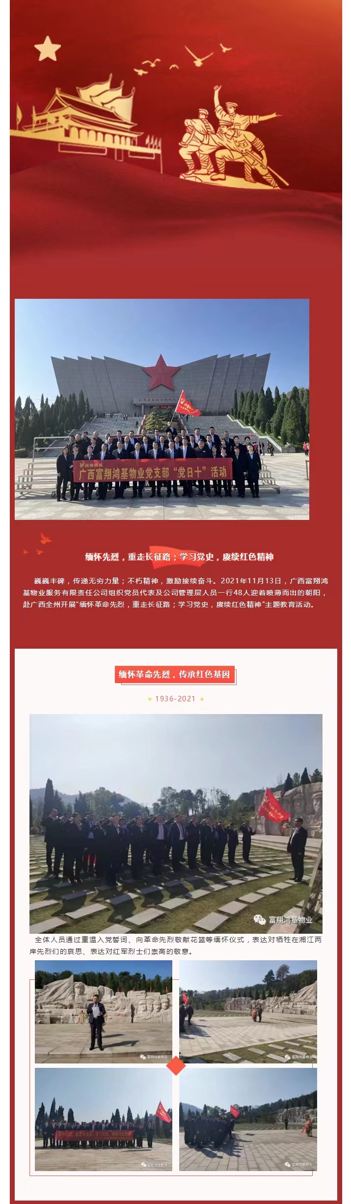 > 缅怀革命先烈 赓续红色精神|广西富翔鸿基物业赴全州湘江战風體役纪念馆開(kāi)展“学习党史,重走長(關女cháng)征路”主题教育活动
