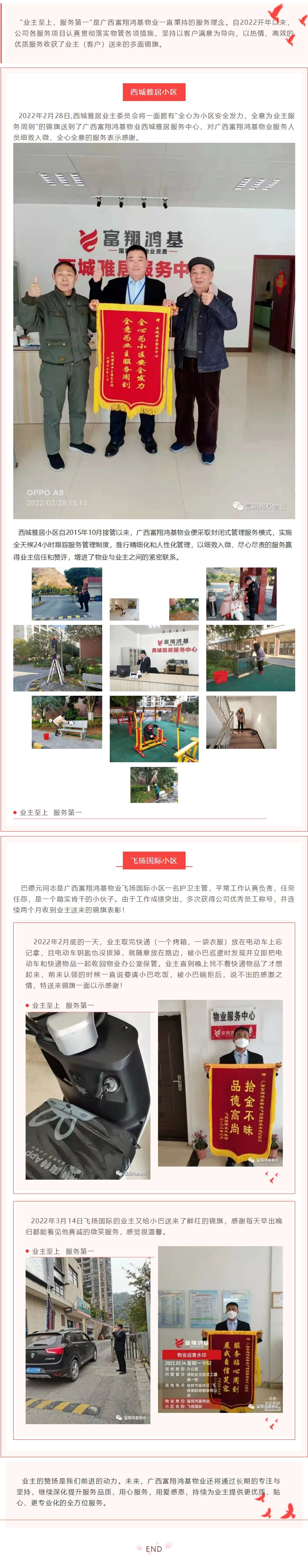 物业服务暖人心,业主赞扬送锦旗_广西富翔鸿基物业